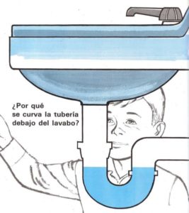 La tubería curvada que hay debajo del lavabo se llama sifón. La suciedad del agua que desciende por la tubería se descompone en el camino
