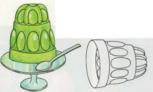 La forma de este trozo de gelatina es la misma que la del molde. Estos helados tienen la forma de los espacios de la cubeta