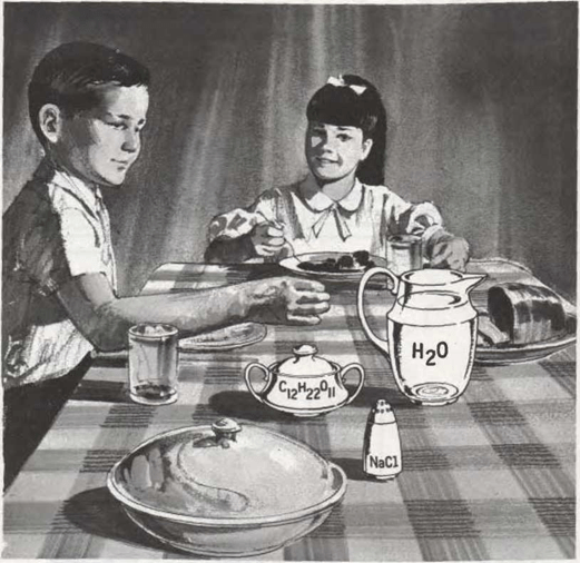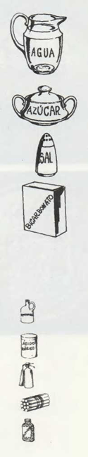 Por favor, dame el H20. Puse demasiada NaCl en la comida. Si no dejo de comer en exceso, me dolerá el estómago. Tendré que tomar un poco de NaHC03, que, por cierto, no es tan agradable al paladar como el C12H22011.