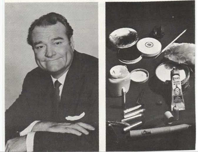 Es porque no usa maquillaje. Para convertirse en un payaso, tiene que embadurnarse la cara con las cremas, los polvos y los coloretes que ves en la ilustración de la derecha.