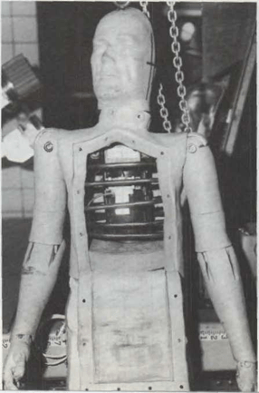 Los ingenieros colocan maniquíes en los coches y, después de provocar choques, averiguan mediante el examen de los maniquíes el daño que pudiera haber recibido una persona real.