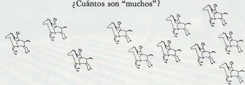 Y, ¿cómo escribirías: “Muchos hombres montan a caballo”? ¿Trazarías tres, cuatro o cinco dibujos de hombres cabalgando?