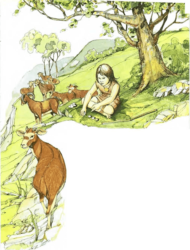 Como los demás miembros de la familia, Mirim tenía mucho trabajo. Incluso de muy pequeña ayudaba a su madre a moler el cereal para hacer el pan, y a recoger frutos silvestres y uvas. Pero ahora que ya contaba siete años tenía su primer trabajo serio. Su tarea diaria consistía en vigilar el rebaño de cabras de la familia.