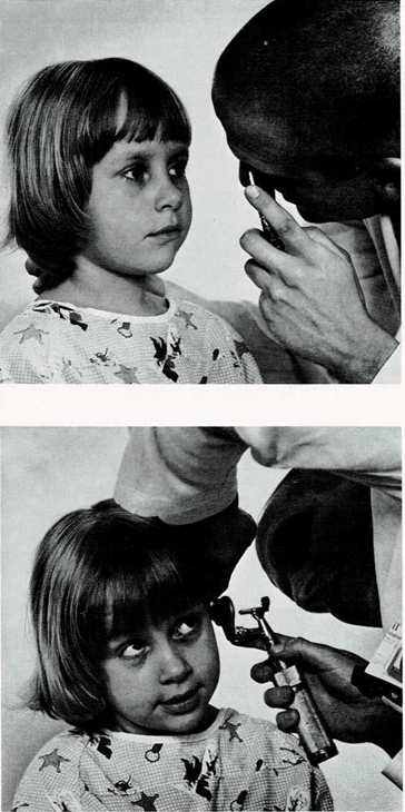 Dirige una pequeña linterna al interior de mis ojos. La luz le permite verlos por dentro. Así puede decir si mis ojos están bien. Puede darse cuenta de si tengo alguna enfermedad. Entonces leo las letras que están dibujadas en un cartón que cuelga de la pared. El médico también quiere estar seguro de que los orificios de mis orejas están limpios. Quiere estar seguro de que oigo.