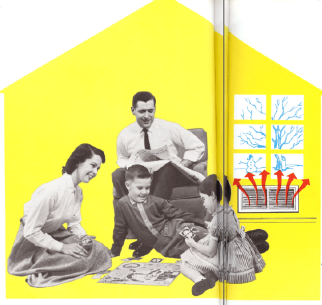 | La caldera o la estufa transforman el aire frío en caliente. El aire entra frío en la caldera y sale caliente. ¿Qué ocurre dentro de la caldera? El aire está formado por pequeñas partículas llamadas moléculas, demasiado pequeñas para que las podamos ver, pero que están continuamente saltando, como pelotas. Cuando el aire está frío, las moléculas saltan lentamente. Cuando el aire se calienta, las moléculas saltan más deprisa. La caldera o la estufa hacen saltar las moléculas más deprisa. El aire frío de una habitación llega a la caldera a través de una tubería. En la caldera hay fuego. Las moléculas de aire frío chocan con el fuego y comienzan a saltar a mayor velocidad. Saltando, se alejan del fuego y vuelven a la habitación. Entonces chocan contigo y te producen una sensación de calor. Del frío al calor, de los saltos lentos a los rápidos, continuamente, una y otra vez, hasta que el aire caldea toda la habitación. Hay muchos tipos de estufas y calderas. Unas queman madera; otras, carbón; otras, petróleo o gas. |