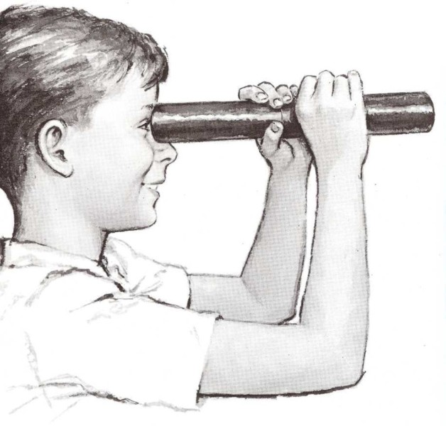 | Cuando la luz penetra en el calidoscopio y atraviesa los discos de cristal, choca contra los cristales de colores. Después se refleja en los espejos y salta de uno a otro, atrás y adelante, atrás y adelante, hasta que llega a la mirilla. A cada salto aumenta el número de imágenes de cada fragmento de cristal. |