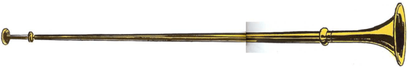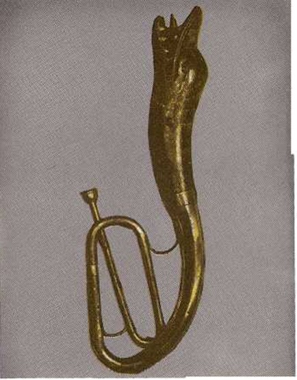 El corno italiano era un tubo retorcito con una cabeza de dragon en un extremo