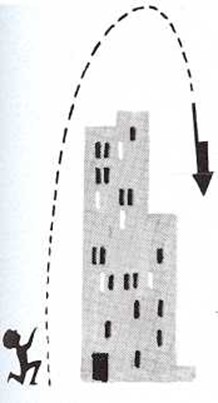 Cuando disparas un cohete, éste se eleva más velozmente que la pelota. Pero no se aleja lo suficiente para quedarse allá arriba. La gravedad lo atrae hacia abajo.