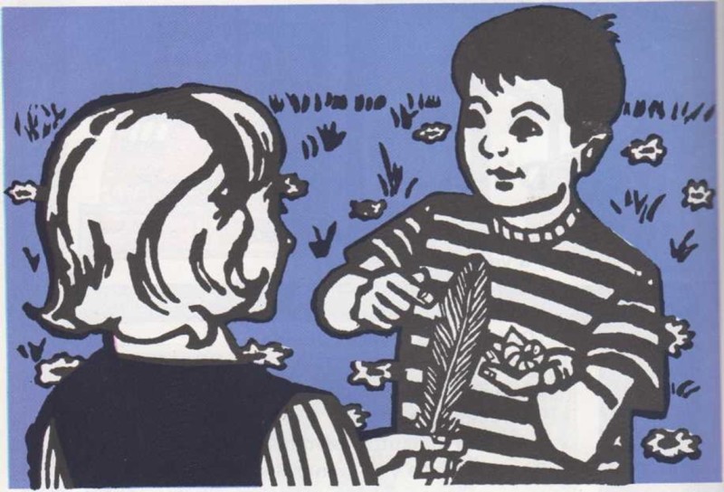 No tenía dinero, pero tenía una concha de caracol, que cambié por una pluma de ganso. Cambié después mi pluma de ganso por una canica rota. Pero la canica no rodaba bien; así que la di a cambio de un soldado de plomo sin cabeza. Pero un soldadito sin cabeza no puede ver, por eso lo cambié por una pelota de ping-pong. La pelota estaba rota y no saltaba; por eso la cambié por medio huevo duro. Pero yo no tenía hambre; así que decidí cambiar el huevo por una navaja. La navaja tenía la hoja oxidada y por eso me deshice de ella a cambio de una peonza.