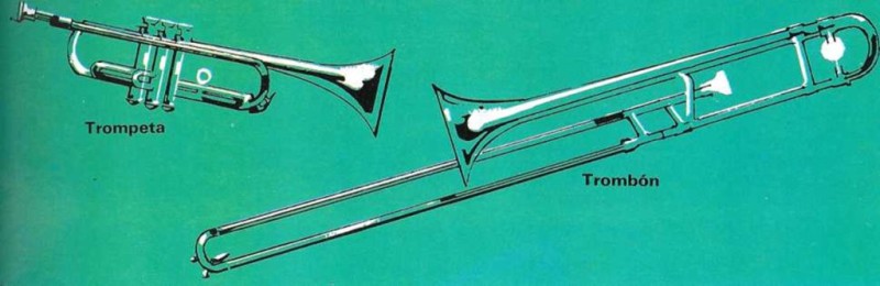 | Los instrumentos de metal forman otra familia. Todos estos instrumentos son de latón y tienen boquilla para soplar.