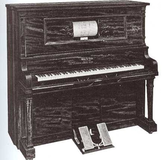 Al apretar los pedales de la pianola, el aire pasa por unos agujeros hechos sobre un rollo de papel.