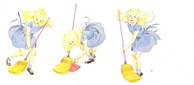 Cuando el salón barre la pequeña Lola, más limpio que el oro lo deja su escoba.