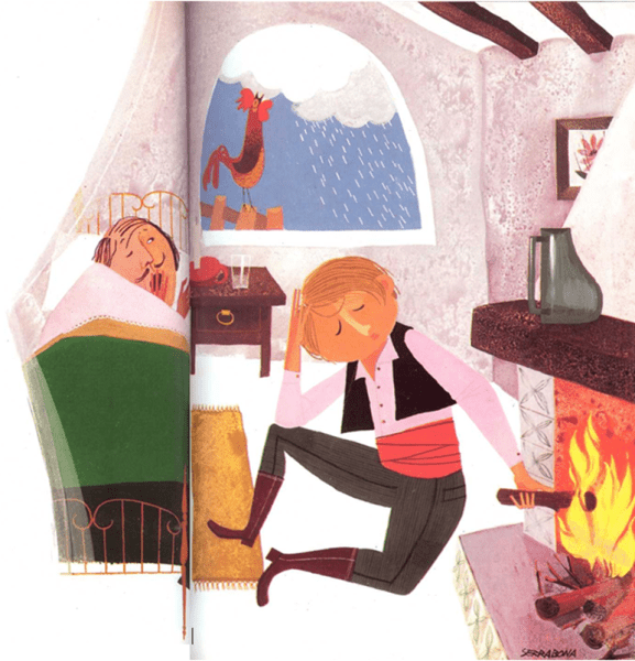 - Arriba, muchacho, mira, que oigo ruido por ahí fuera.