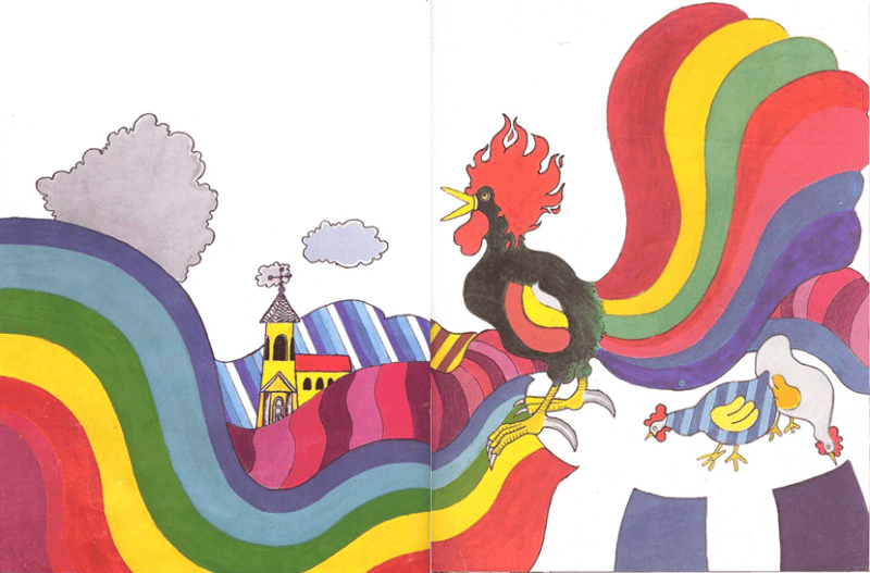 Yo soy el gallo más gallo – que existe en el gallinero, mi cresta es como una llama, mis espolones de acero, y el arco iris envidia mi cola de gran plumero.