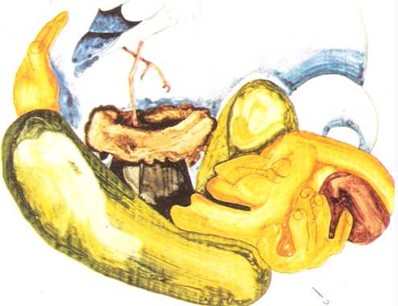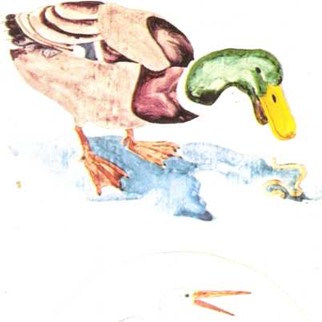 Debajo del pico, el pato -el pico es su gran nariz — mira, desde hace un buen rato, cómo baila una lombriz.