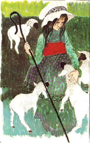 Estaba una pastora, larán, larán, larito, estaba una pastora cuidando un rebañito.