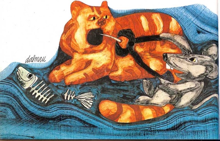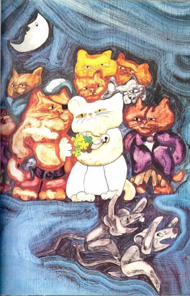 Porque bebe la leche con nata. Porque sigue al ratón y a la rata. Porque es novia del gato pirata.