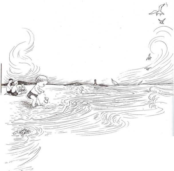 Playa, campo de juegos, jardín de olas, flores de conchas, blancas corolas…