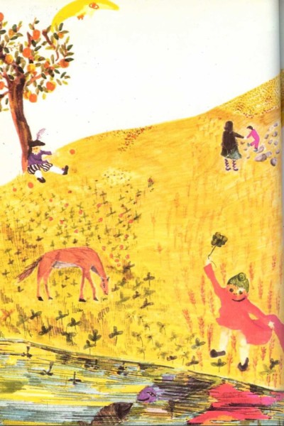 La señora Luna le pidió al naranjo un vestido verde y un velillo blanco.