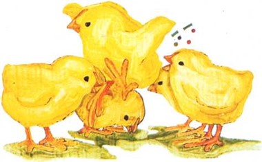 Cinco pollitos tiene mi tía: uno le salta y otro le pía y otro le canta la sinfonía.