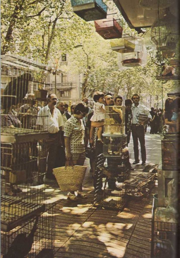 Venta de pájaros en Las Ramblas de Barcelona, España. |