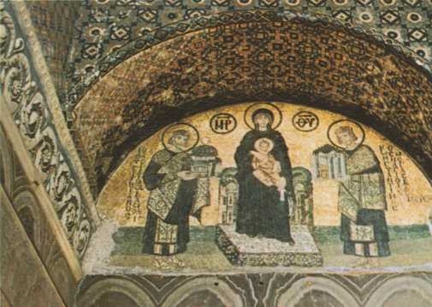 Constantino, cuando fue coronado emperador del Imperio Romano, hace mucho tiempo, dejó Roma y fundó una nueva ciudad que pasó a denominarse Constantinopla. Allí construyó el templo llamado Santa Sofía. Años después, otro emperador construyó otra iglesia que también recibió este nombre. Santa Sofía fue una catedral de la Iglesia Ortodoxa Griega. «Ortodoxa» viene de las palabras griegas «orthos» y «doxa» que significa «creencia verdadera». Constantinopla se llama hoy Istanbul, y Santa Sofía, anteriormente catedral y mezquita, es actualmente un museo que domina la ciudad. En una de sus paredes hay pintado un retrato del gran emperador Constantino. |