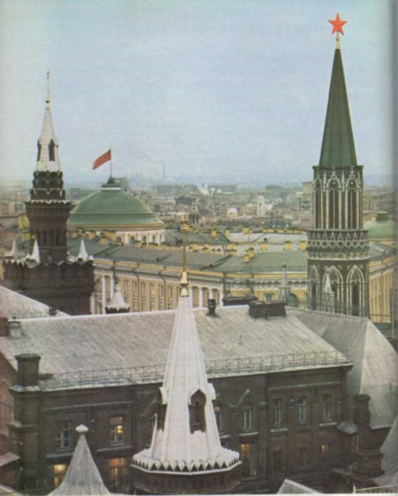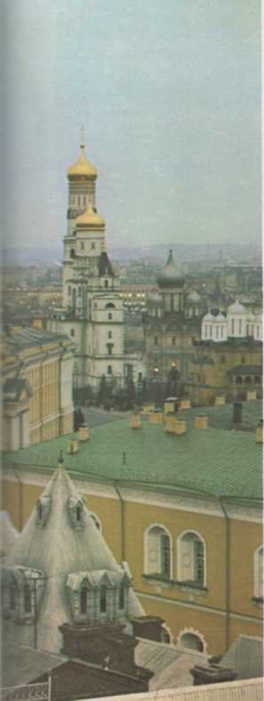 Detrás de los muros de una fortaleza esperarás encontrar cuarteles para los soldados. Pero, ¿cabría esperar encontrar allí palacios, catedrales e incluso algunos edificios del Gobierno? Estos edificios se hallan detrás de los muros de una fortaleza: el Kremlin de Moscú, la capital de Rusia. La palabra «Kremlin» procede de un nombre ruso que significa «fortaleza». No se pueden visitar los edificios del Gobierno en el Kremlin porque son secretos. Pero se puede visitar, por ejemplo, el Palacio de la Armería y ver muchas cosas que pertenecieron a los zares. Los zares eran, hace años, los emperadores de Rusia. En la Armería se pueden contemplar huevos de pascua hechos con joyas, cascos de oro, armas y escudos, sables engastados de joyas e incluso el trono de un zar llamado Iván el Terrible. Esto es el Kremlin de Moscú, en Rusia. La estrella roja está situada en lo alto de la torre del Kremlin, y la bandera roja en el Gran Palacio. |