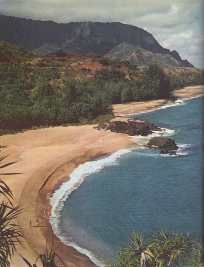 Cierta leyenda refiere que en una playa de Hawai vivía una vez un gigante irascible y malhumorado que asustaba a la gente con sus rugidos. Solía molestar a las personas y se burlaba de ellas sacándoles la lengua. Pero, un día, otro gigante bueno mató al gigante malo y lo arrojó a los tiburones. Estos devoraron todo su cuerpo a excepción de la lengua, ya que era demasiado dura, incluso para sus afilados dientes. Así pues, la dejaron sobre la playa, donde se convirtió en una roca negra. Hoy, una gran lengua de roca negra que se extiende en el agua a lo largo de la playa es todo lo que queda. Todo el mundo sabe que no existen los gigantes. Pero la leyenda citada todavía puede oírse relatar a los nativos en la playa de Lumahai, situada en una de las más bellas islas de Hawai. Quizá la playa más conocida sea la de Waikiki, en Honolulú, pero hay quien dice que la de Lumahai, en la isla de Kauai, es la más hermosa de todas. ‘ La playa de Lumahai está situada en la parte norte de la isla de Kauai, en el archipiélago hawaiano. |