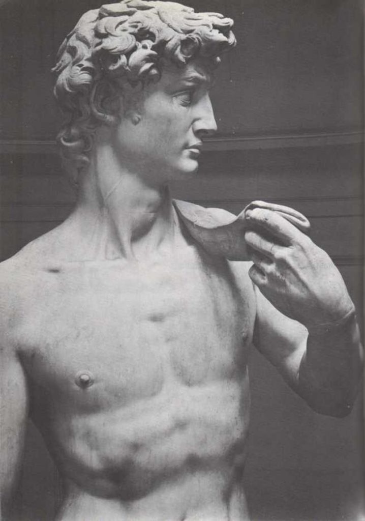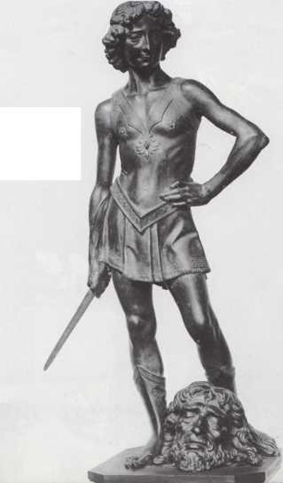 Hace unos 3.000 años, los filisteos tenían en su ejército a un gigante llamado Goliat. Era muy grande, y tan feroz que asustaba a todo el mundo. Pero un joven pastor, llamado David, no se asustó de él. Cuando los filisteos atacaron al pueblo de David, éste se adelantó con una honda y mató a Goliat de una certera pedrada. Los filisteos, asustados, huyeron. Cuando David se hizo mayor, se convirtió en rey de Israel, la tierra donde vivía su pueblo. Hay una gran estatua de David joven en la Academia de Bellas Artes de Florencia, Italia. Esa estatua la realizó Miguel Angel, un gran escultor italiano que vivió hace cuatrocientos años.
