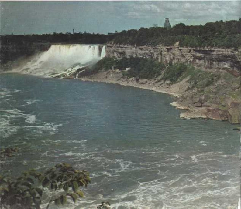 Las cataratas del Niágara: a la izquierda la cascada de la zona estadounidense: a la derecha, la de la zona canadiense. |
