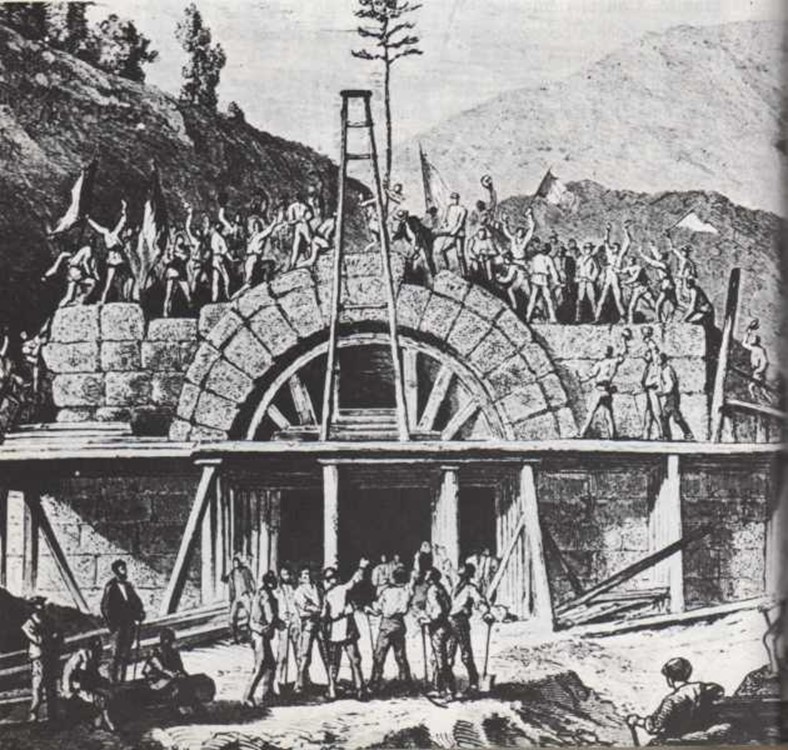 Los obreros franceses e italianos terminaron el túnel del Mont Cenis en 1870. |