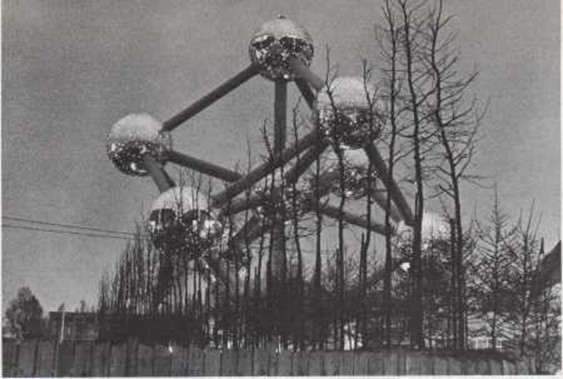 Todo, incluida la comida, está hecho de átomos. Nunca podrás comer dentro de un átomo; es demasiado pequeño. Pero en Bruselas (Bélgica), es posible hacerlo en un lugar parecido, en el llamado Atomium. Se sirve comida dentro de la reproducción de un átomo. El modelo es cientos de miles de millones de veces más grande que un átomo real. El Atomium reproduce a gran escala un conjunto de átomos que forman lo que se llama una molécula. Es más alto que un edificio de treinta pisos y cada esfera es la reproducción de un átomo. En la superior hay un restaurante. Por una escalera mecánica, se sube de una esfera a otra y de este modo se llega al restaurante. Pero también es posible llegar directamente en uno de los ascensores más rápidos de Europa. En los Estados Unidos es posible comer incluso a mayor altura del suelo. Mediante un ascensor se sube a una plataforma, dos veces más alta que el Atomium, situada en lo alto de la Space Needle (Aguja del Espacio), en Seattle (estado de Washington). El restaurante situado sobre esa plataforma da una vuelta sobre sí mismo cada hora. |