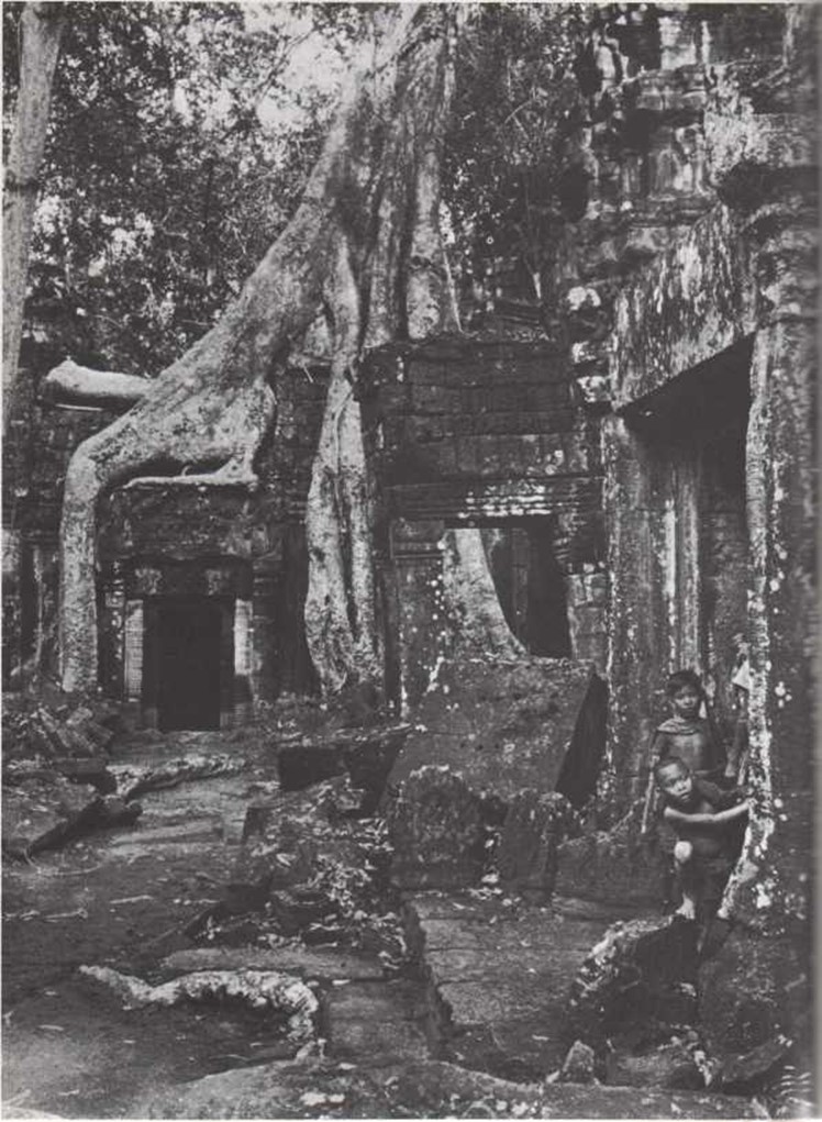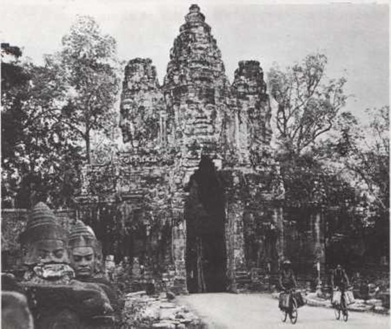 Hace un centenar de años se descubrió la ciudad de Angkor en las selvas de Camboya. Enormes templos de piedra, puertas y murallas se hallaban cubiertos por una espesa y salvaje vegetación. Alrededor de la ciudad había muchos canales y un centenar de estanques, en su mayor parte completamente secos. El único signo de vida en aquel paraje eran los animales de la selva. ¿ Quién había construido aquellos sólidos templos y esculpido aquellas piedras ? Poco a poco, estudiando las ruinas, los arqueólogos hallaron respuesta a gran parte de los misterios de Angkor. Hace centenares de años, el país de Camboya y el territorio vecino habían sido gobernados por el pueblo de los khmer. Ellos construyeron la ciudad de Angkor, que fue la capital de su imperio. Entre los millares de relieves y esculturas que decoran los muros del templo se pueden ver extrañas representaciones de cerdos asados, monos que se rascan con sus largas uñas y guerreros armados con lanzas. Estos relieves y esculturas nos dan una idea de cómo vivía el pueblo de Angkor hace muchos años. Recientemente se ha limpiado la ciudad con ayuda de modernas máquinas y se ha restituido el agua a los canales que en otro tiempo irrigaban los arrozales de este antiguo imperio.