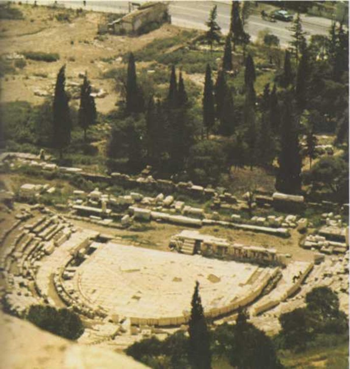 Estado actual del teatro de Dionisos, en Atenas, lugar en el que se representaron las obras de Aristófanes y otros autores |