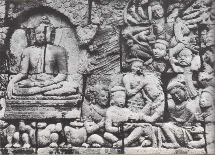 El templo de Borobudur en Java está decorado con millones de esculturas de piedra.