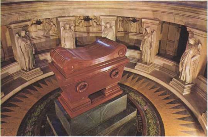 En París hay un gran edificio, llamado Hotel des Invalides, que en un principio sirvió de hospital para los soldados enfermos y heridos. En la actualidad, el Hotel des Invalides es sede de oficinas militares y museo del Ejército, pero su fama se debe principalmente a la tumba de un célebre personaje de la historia de Francia, Napoleón Bonaparte, situada en su interior. Napoleón, general del ejército francés, venció en numerosas batallas y llegó al apogeo de su gloria cuando se coronó a sí mismo como emperador. La clamorosa derrota sufrida por él en la batalla de Waterloo originó su caída y destierro a la isla de Santa Elena, donde murió y fue enterrado. Años más tarde, el Gobierno francés quiso dar sepultura en su patria a este ilustre personaje. Los restos de Napoleón fueron trasladados a París, a una tumba de granito rojo construida exactamente bajo la cúpula del Hotel des Invalides.