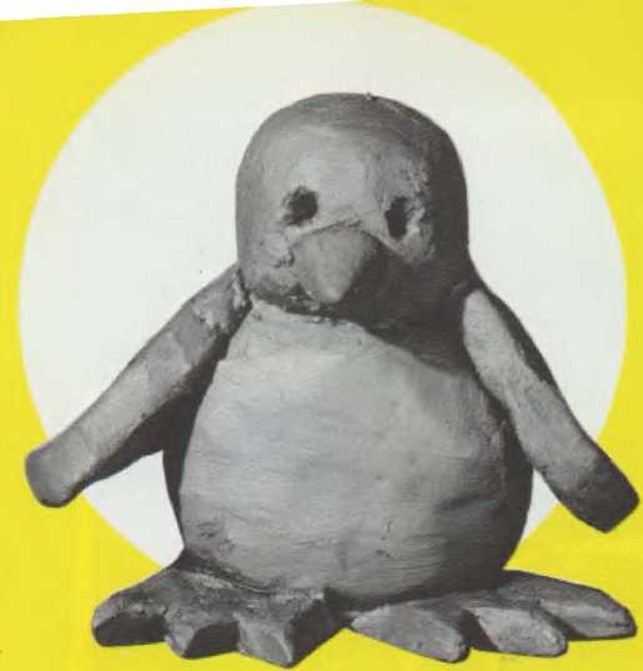 Para modelar el pingüino, amasa una gran bola de barro, la cual constituirá el cuerpo, y después otras tres bolas pequeñas del mismo tamaño, una para la cabeza y dos para las alas.