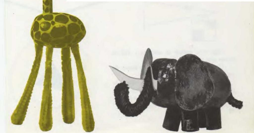 Para modelar animales de formas. caprichosas puedes emplear cualquier clase de material. A la forma modelada de un animal se pueden añadir limpiapipas, hebras de lana, mondadientes, tubos vacíos de pasta dentífrica, fundas vacías de lápices labiales, carretes vacíos, cartón, fieltro, etc. Puede hacerse un león de barro con dos bolas de este material, una para el cuerpo y otra para la cabeza. Haz el cuello con el tapón de un tubo de pasta dentífrica. Para la melena y la cola, utiliza unos trozos de limpiapipas y para las patas emplea mondadientes o carretes. Si quieres hacer una jirafa de largo cuello tendrás que modelar con barro el cuerpo y la cabeza. Un lápiz servirá para el cuello. Emplea limpiapipas para hacer las patas y la cola. Las orejas y cuernos se hacen con papel, mondadientes o trozos de limpiapipas. |