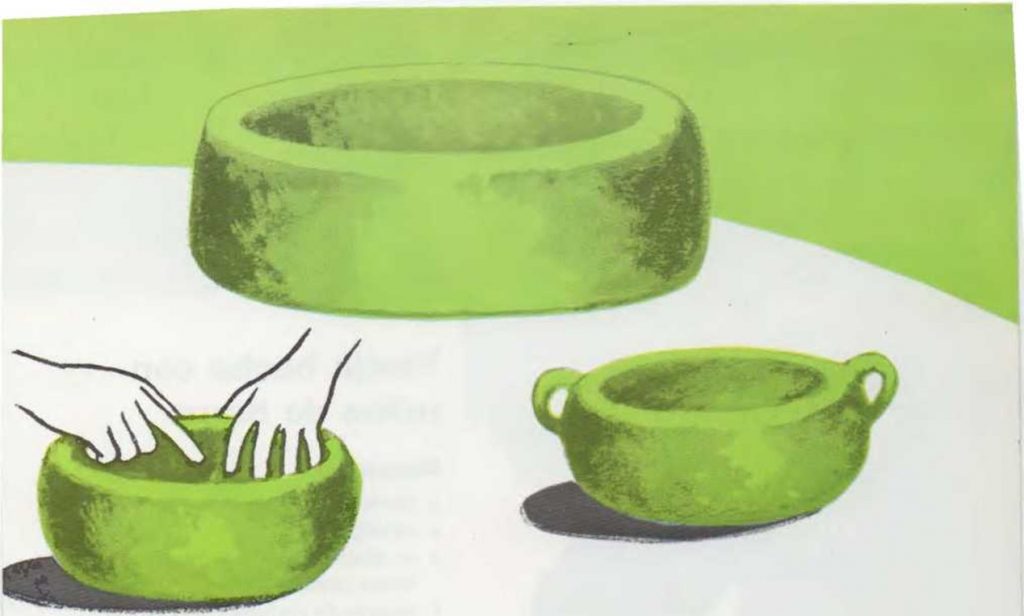 3. Sigue trabajando con los dedos hasta que los lados de la vasija sean más delgados. Cuando la vasija haya adquirido la forma deseada, procede a alisar las superficies interior y exterior. |
