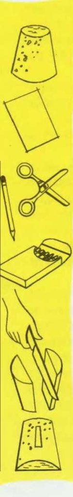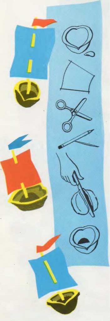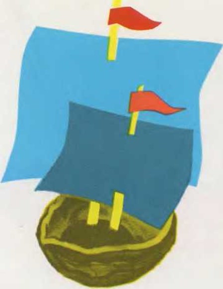 Dibuja una vela del tamaño aproximado de un sello de correos y recórtala. Un palillo que atraviese la vela por dos puntos servirá de mástil. Observa el dibujo. Clava la parte inferior del mástil en el barro.