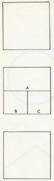 Quizá creas que es imposible, pero en realidad no lo es. He aquí lo que tienes que hacer. Divide el cuadrado en tres partes: A, B y C. Si las colocas como en el dibujo, verás cómo de un cuadrado haces un rectángulo.