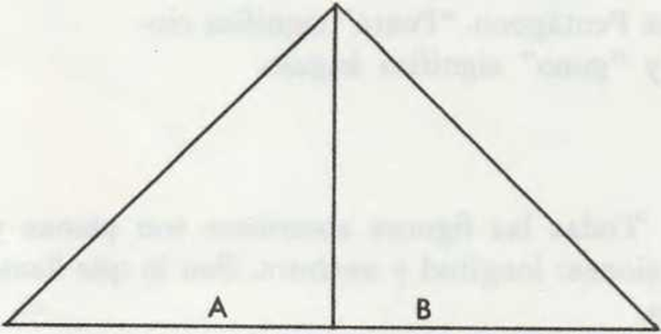 Ahora, trata de trazar un triángulo a partir de este cuadrado. Divide el cuadrado en dos partes: A y B. Unelas como se te indica más abajo y habrás convertido un cuadrado en un triángulo.