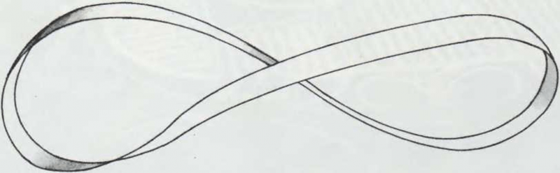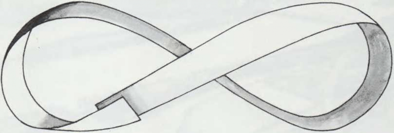 Corta una tira de papel de unos 2 cm de ancha y tan larga como dos reglas. Enlaza la tira en forma de anillo. Antes de unir con pegamento los dos extremos de la tira, tuércela sin darle la vuelta completamente. Observa la ilustración.