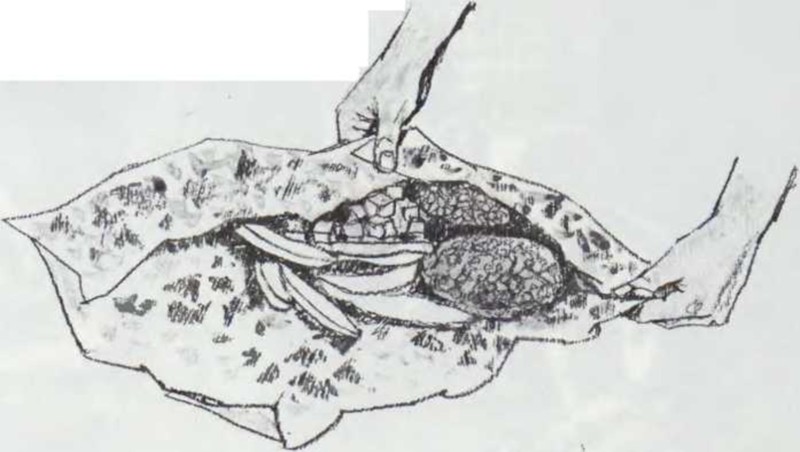 Después de cocerse el tiempo necesario, retira el paquete del fuego. Ábrelo y come directamente de él. Una de las muchas comidas que se preparan con papel de aluminio es la hamburguesa con patatas y zanahoria. Para una sola ración, toma como unos 100 g de hamburguesa y haz un pastelillo que sea tan grueso como tu dedo pulgar. Pela una patata y córtala en trozos. Raspa una zanahoria y divídela en rodajas. Envuelve todo en papel de aluminio y coloca el paquete sobre el fuego. Déjalo cocer durante quince minutos. |