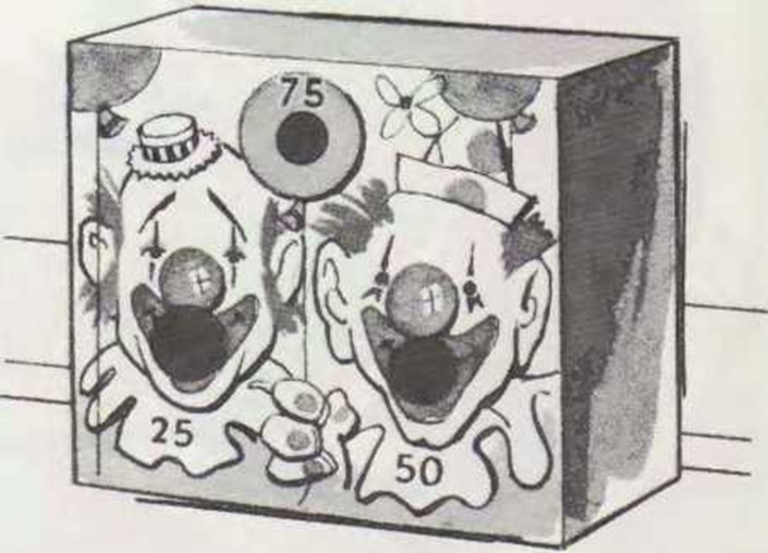 Haz agujeros en cada boca y en el globo. Estos agujeros deben tener los diámetros diferentes, aunque mayores que el de la pelota. Pinta la caja, los payasos y el globo, así como el número de puntos que asignes a cada agujero. Los agujeros más pequeños deberán tener la puntuación más elevada.