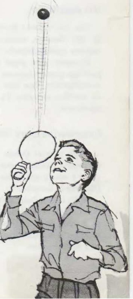 La paleta de ping-pongMateriales: • tablero contrachapado delgado • cartulina para hacer un patrón Corta un modelo de paleta en un trozo de cartulina. Mira el dibujo. Puedes darle cualquier medida, pero procura que sea fácil de asir con la mano. Antes, ensaya con diversos modelos. Marca en el tablero contrachapado los contornos del modelo de cartulina. Para serrarlo, sujeta el tablero en el tomillo de banco. Con papel de lija, pule los bordes de la paleta. Con dos paletas y una pelota, podéis jugar tú y tus amigos al ping-pong. |
