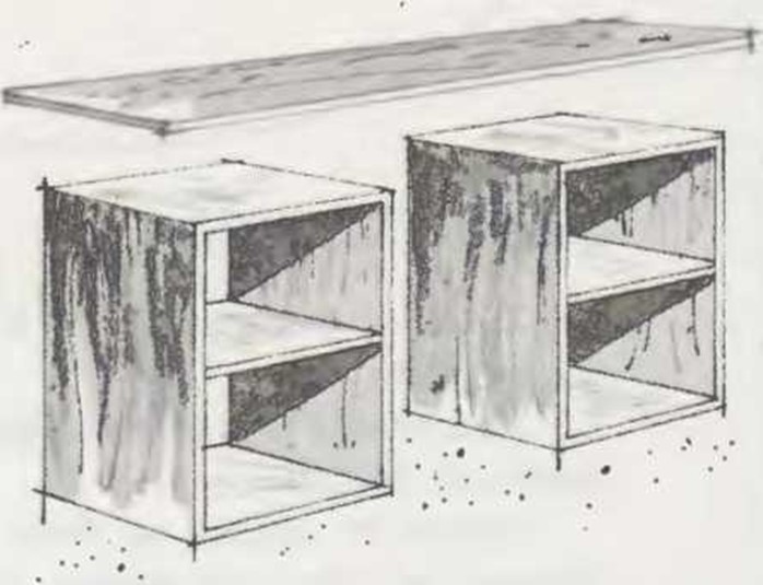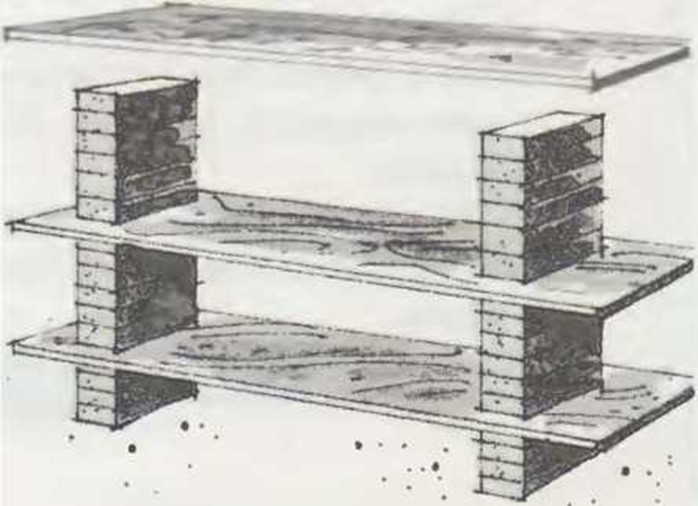 Elige el sitio donde vas a poner la estantería, coloca varios ladrillos en el suelo y apoya una de las tablas encima. Observa la ilustración.