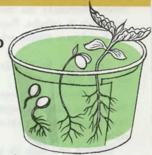 Introduce las semillas entre el secante y el cristal. Todos los días debes poner cuatro o cinco cucharadas de agua en el vaso para mantener el secante húmedo. Observa cómo crecen las raíces, los pedúnculos y las hojitas.