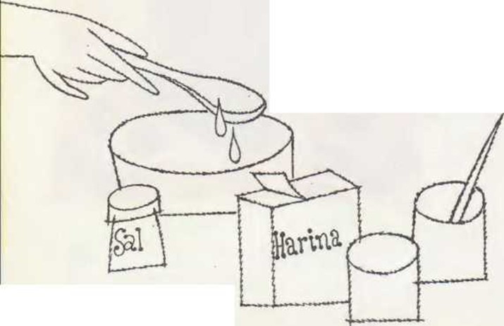 • harina: 3/4 de una taza • sal: 1/4 de una taza • agua