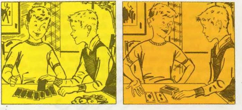 Coge una carta EL JUEGO Un amigo escoge una carta de la baraja y la vuelve a dejar en el montón sin enseñártela. Después de barajar, sacarás, con gran sorpresa de tu amigo, la misma carta que éste escogió. EL TRUCO Deja que tu amigo escoja una carta de la baraja. Pídele que recuerde de qué carta se trata, pero que no te la enseñe. Mientras él mira su carta, observa rápidamente cuál es la que ha quedado debajo de la baraja. Ahora, pídele que ponga su carta encima de las otras. Toma la última carta de la baraja y colócala encima. Baraja los naipes tantas veces como quieras, pero hazlo siempre de tal modo que las dos cartas superiores no cambien de posición en la baraja. Practicando un poco, podrás conseguirlo fácilmente. A continuación, divide la baraja en dos grupos y coloca encima la parte que estaba debajo. Luego, extiende la baraja y examina las cartas una a una hasta encontrar la escogida por tu amigo. Sabrás cuál es porque vendrá a continuación de la que tú observaste.